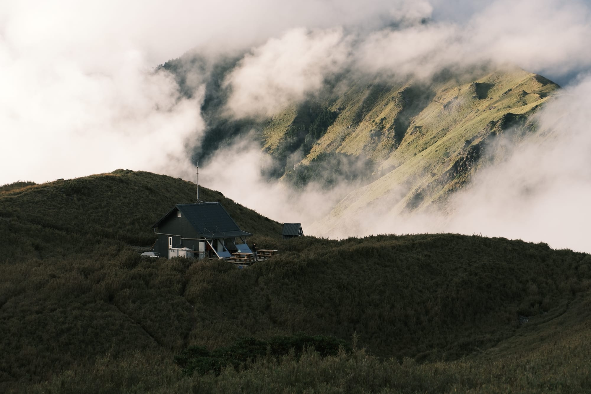 這趟旅程裡,最喜歡照片就是油婆蘭山屋與後面若隱若現的山景,看到那一幕,我提醒著自己要珍惜所有的人事物,因為所擁有的,都有可能在下一秒消失不見,成為遺憾的念頭。