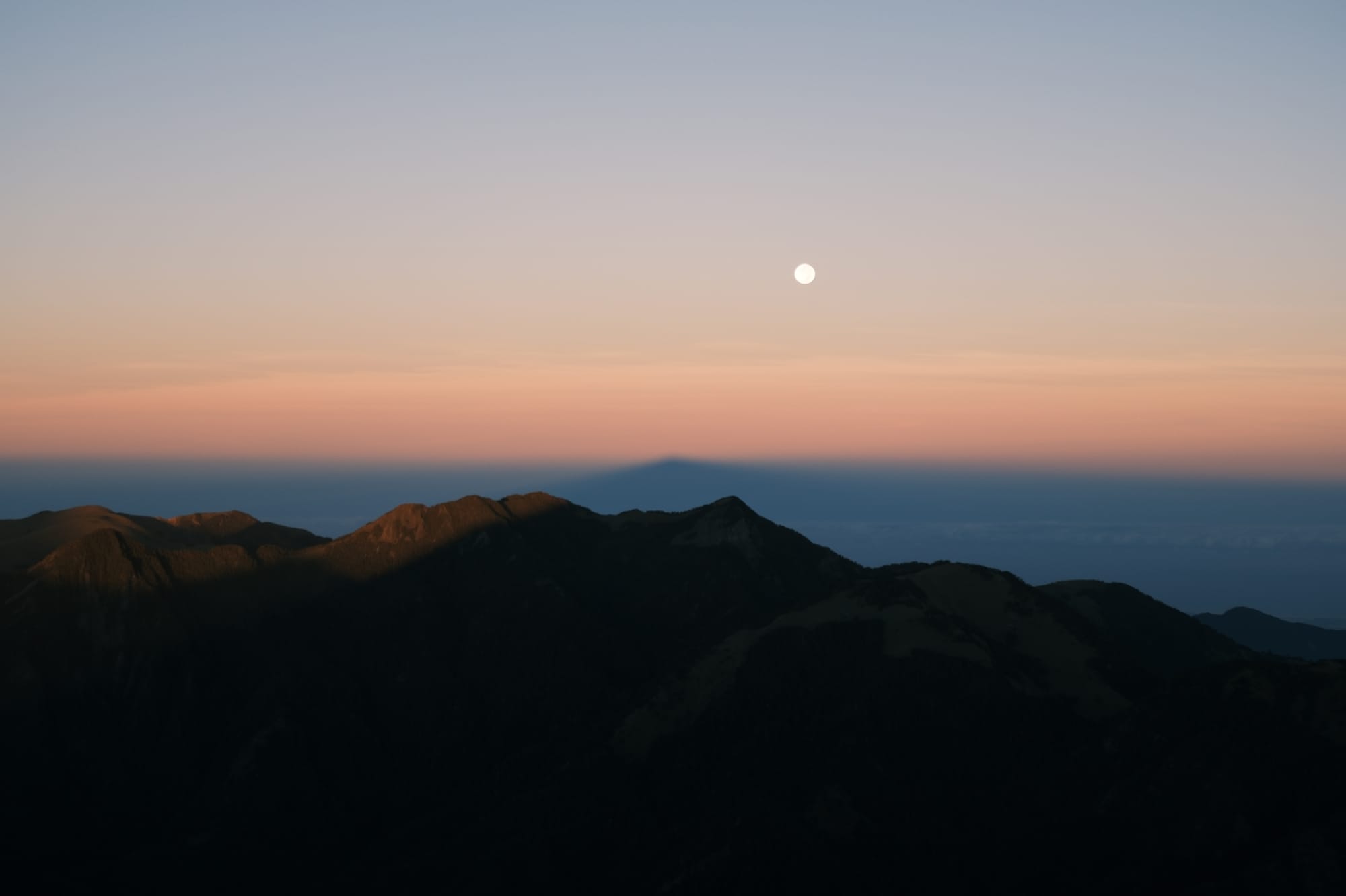 前往大劍山的一路上都有大大的月娘守候著,直到登頂時刻,日出也漸漸探出來了,那一刻覺得自己是什麼最幸運的人嗎,竟然一邊日出、一邊月亮,一切都浪漫鼠了。