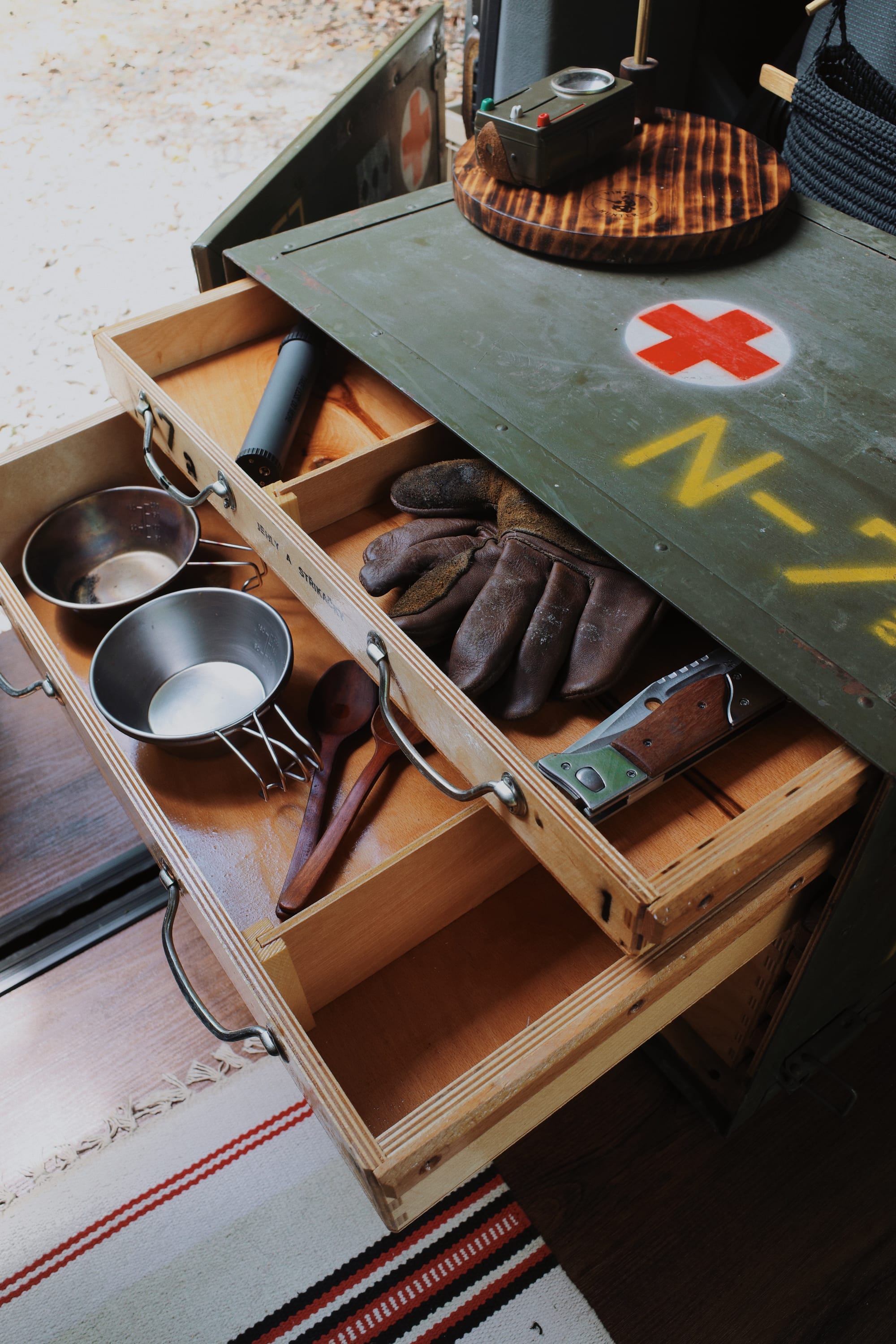 我們的野營比較偏向「風格露營」,會利用一些老件、老軍品,甚至自己開發布料,搭配復古的設計,把整個空間的風格與氛圍統一起來。也因為這樣,常常會吸引到本來就喜歡這種風格的人,大家自然就能一起交流。