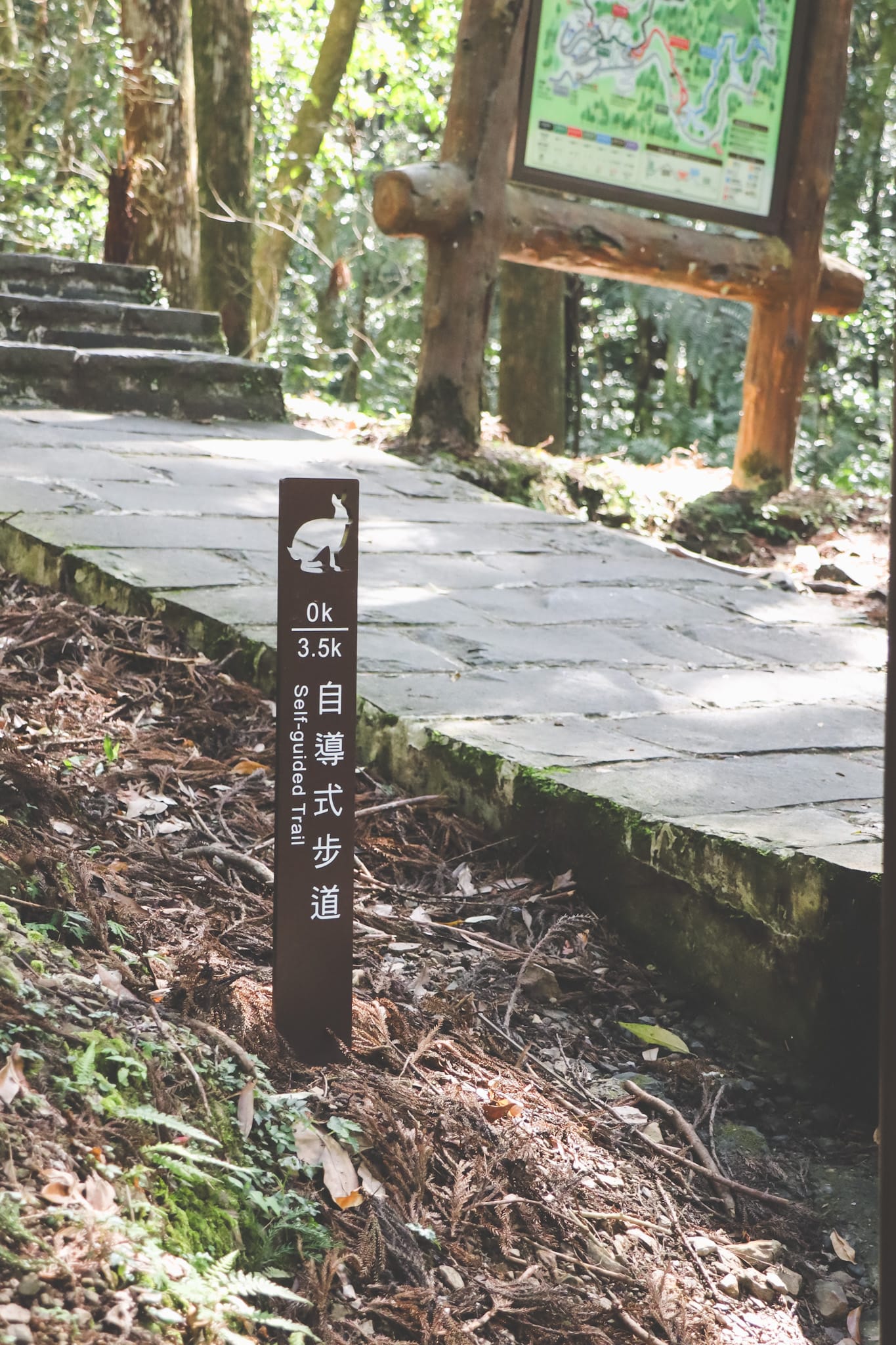 我從遊客中心旁登山口走自導式步道啟登,一個人悠悠地走,心裡祈禱著能遇上雲霧,為滿佈青苔的柳杉林增添一些新顏色。