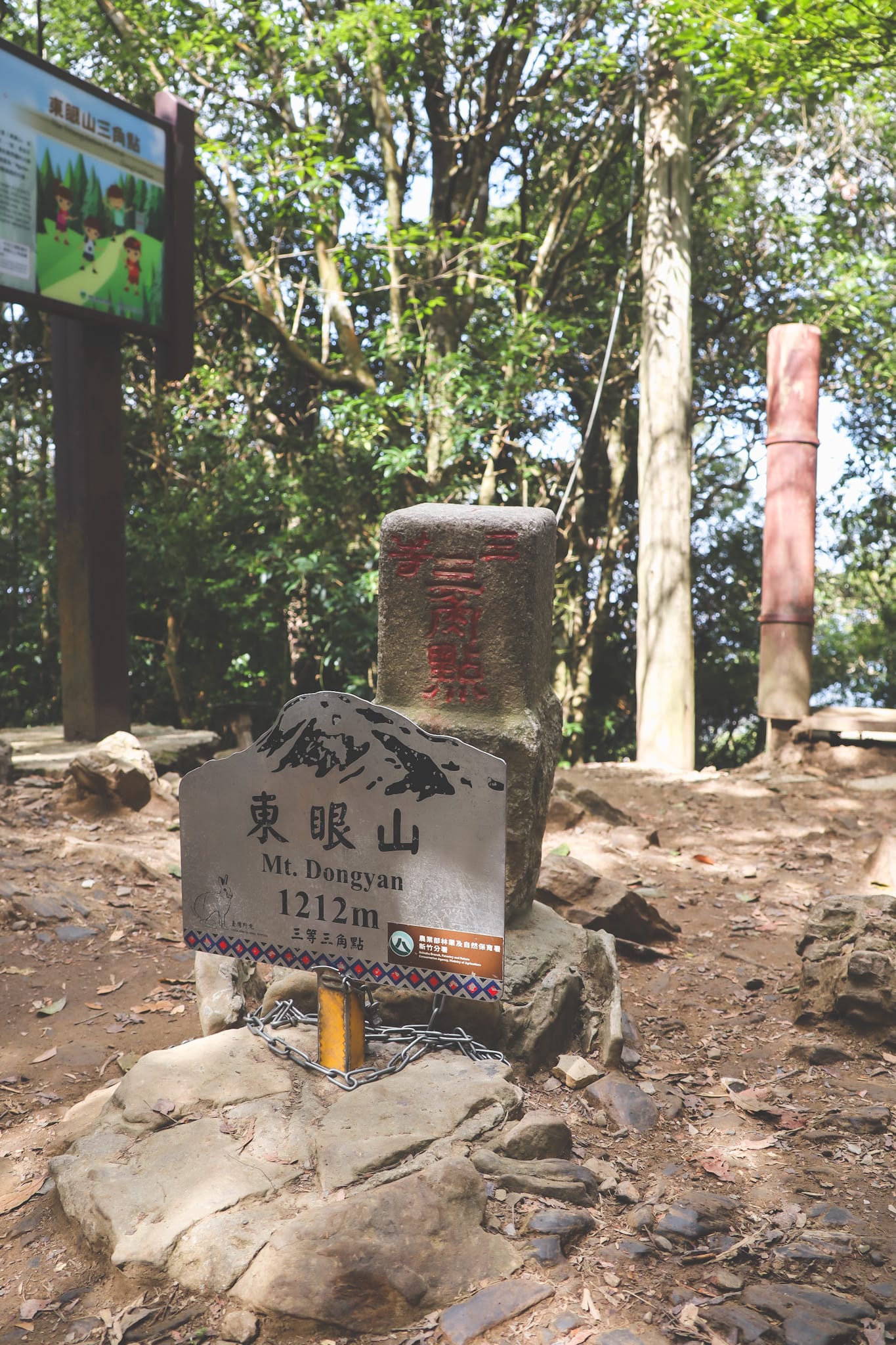 走著走著約 1 小時就登頂東眼山囉,這裡沒有展望,不過往左轉上一個木階梯後就有觀景平台可以一覽山景了。