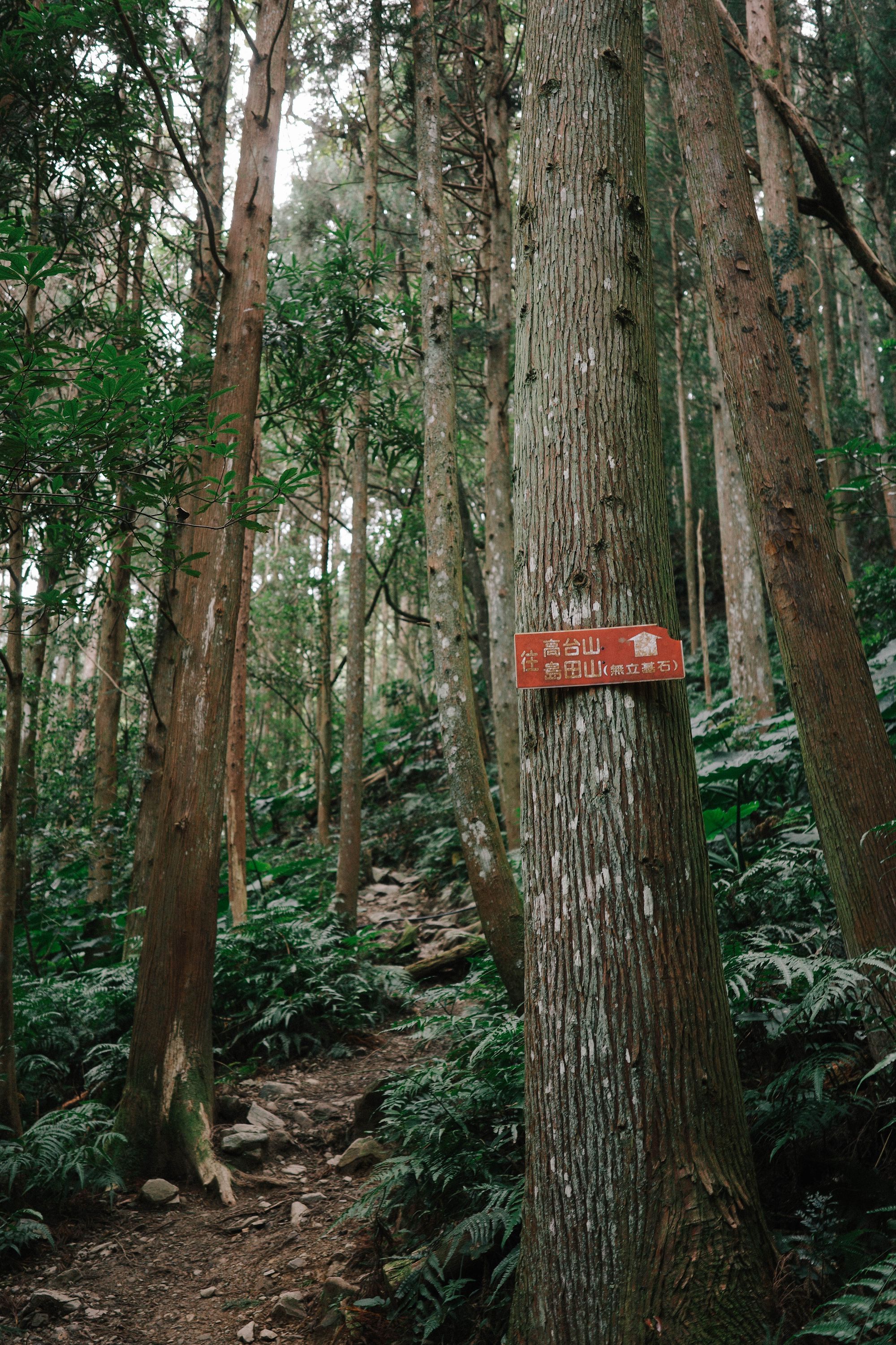 高島縱走會經過高台山、小島田山、中島田山、大島田山,沿路都是柳杉森林,我們下午2點半才正式開爬,就這樣在樹林裡悠悠地走,悠悠地感受自己的呼吸。