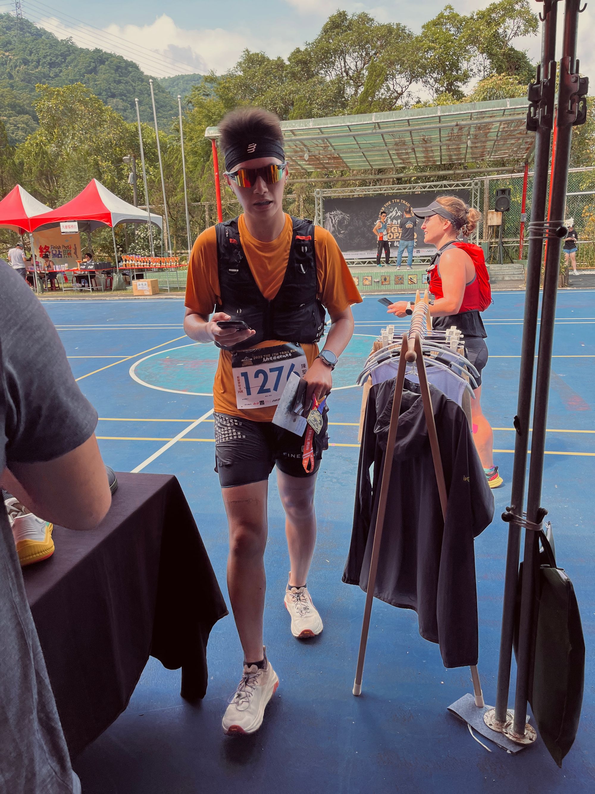 然後登山杖全程插在背後沒拿出來過 🤣 最後的完賽時間是 02:02:05,總名次 35,最後的柏油路已經盡力衝刺了還是來不及在 2h 內完成,可惡。