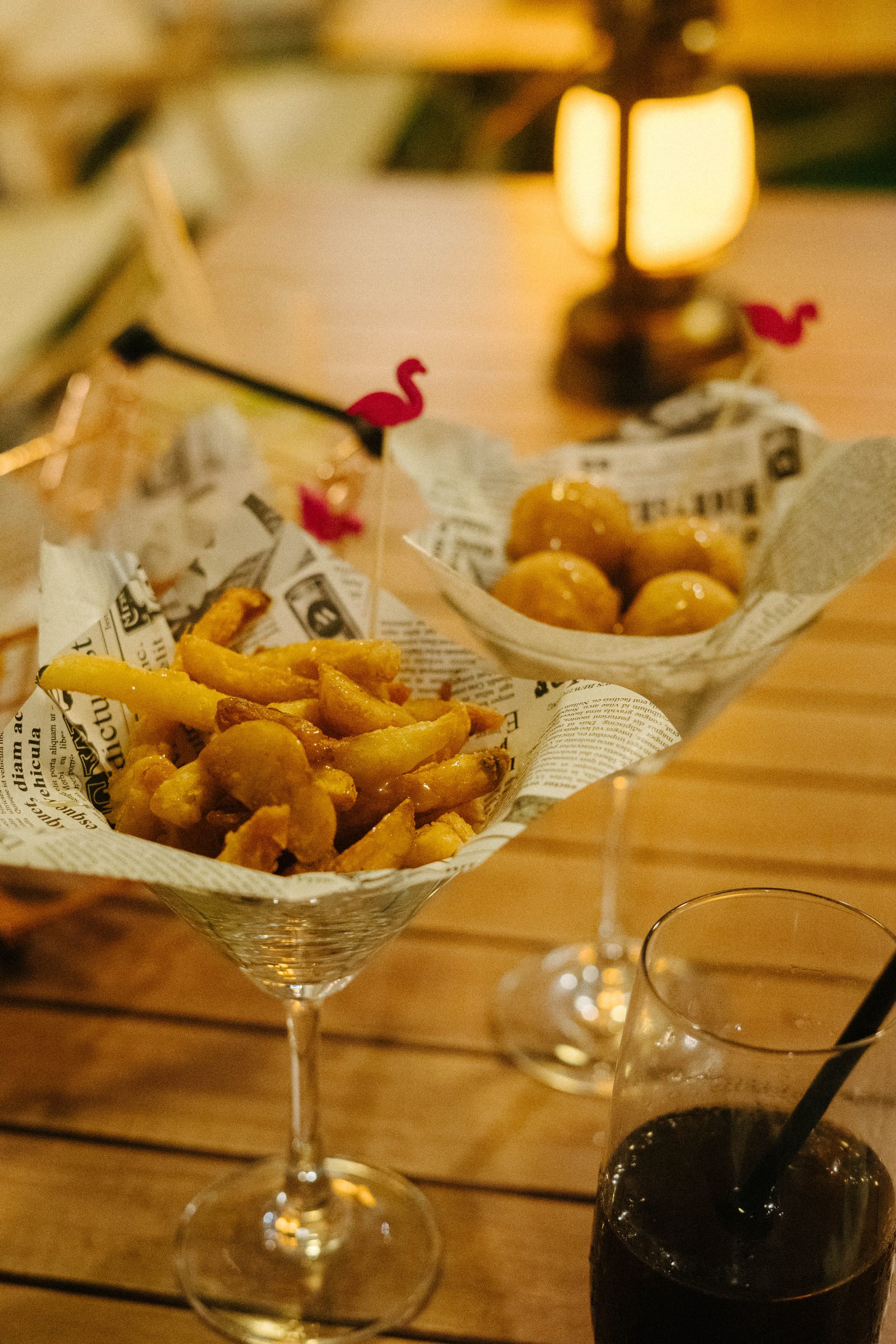 店內販售炸物、點心、飲料、調酒