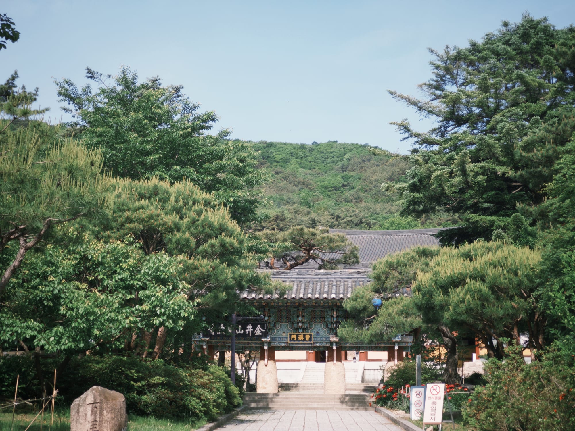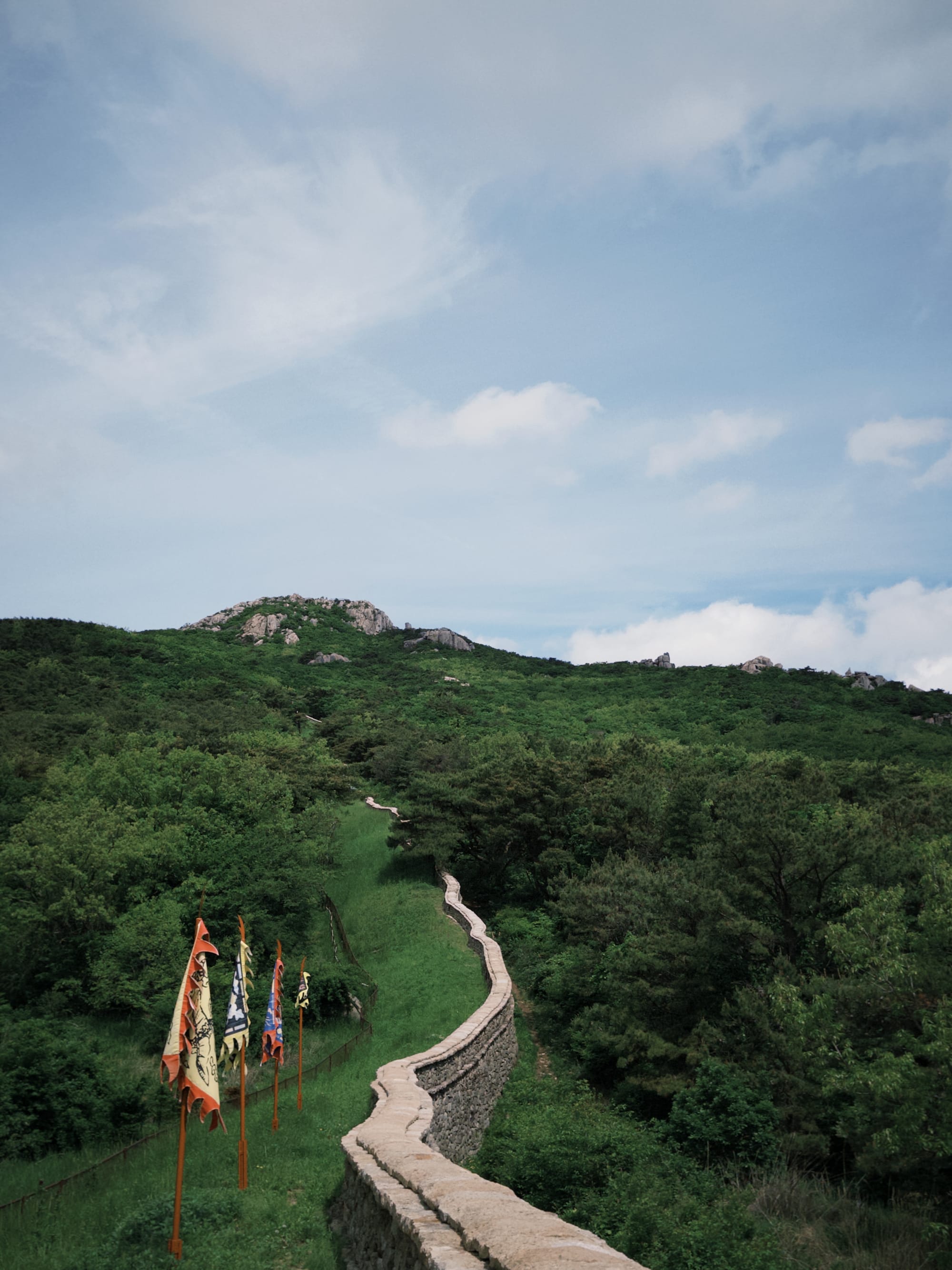 從梵魚寺出發,一路往海拔801.5公尺前進!雖然穿著不太適合爬山的裙子,但沿途風景真的美炸,經過金井山城北門,像是穿越時空進入古代守城傳說~