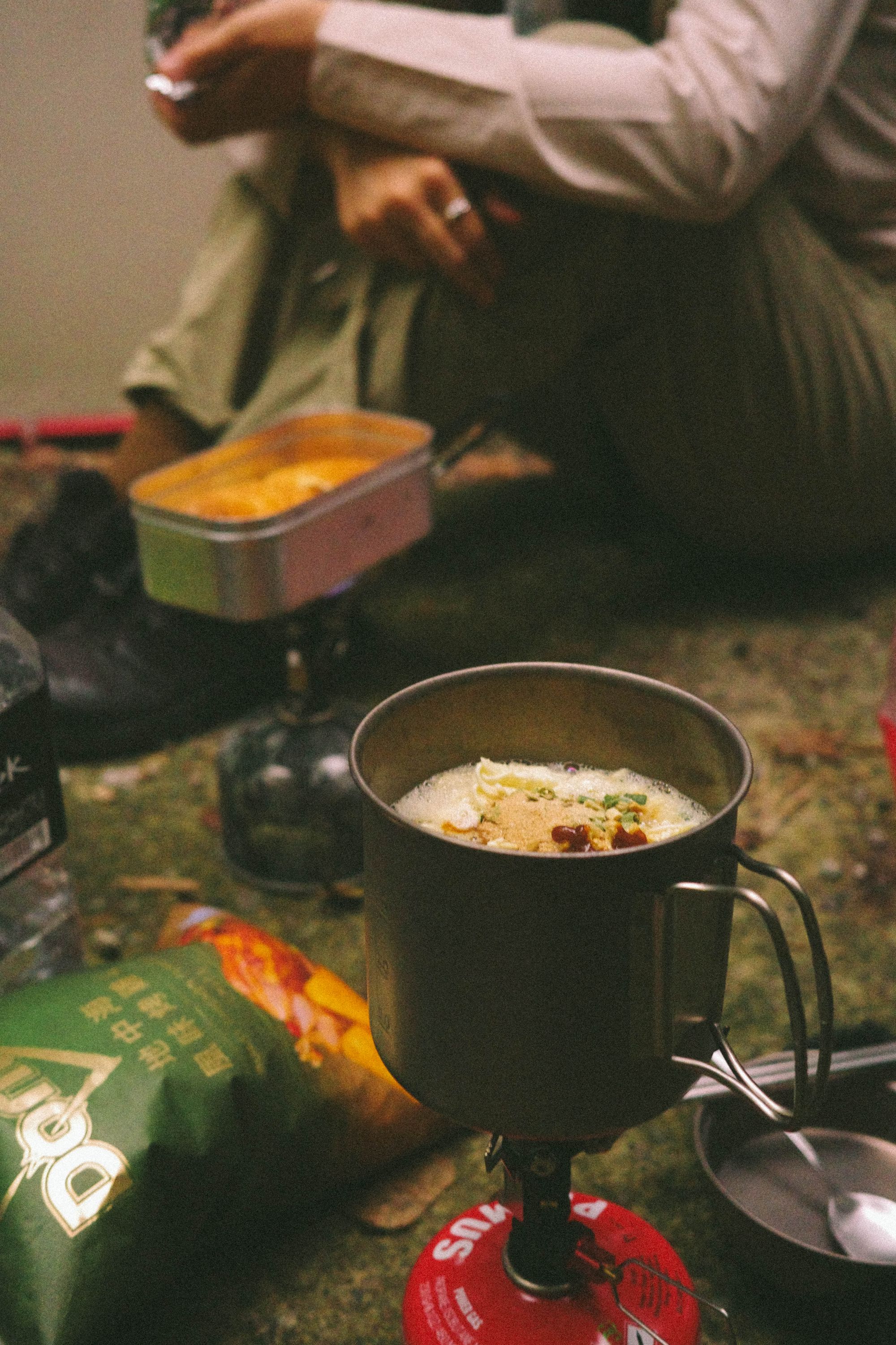 也許是因為低海拔的關係,這一次竟少數一覺到天亮。早上最重要的事情大概就是煮奶茶、吃早餐了吧,這可說是在山裡的儀式感呢。