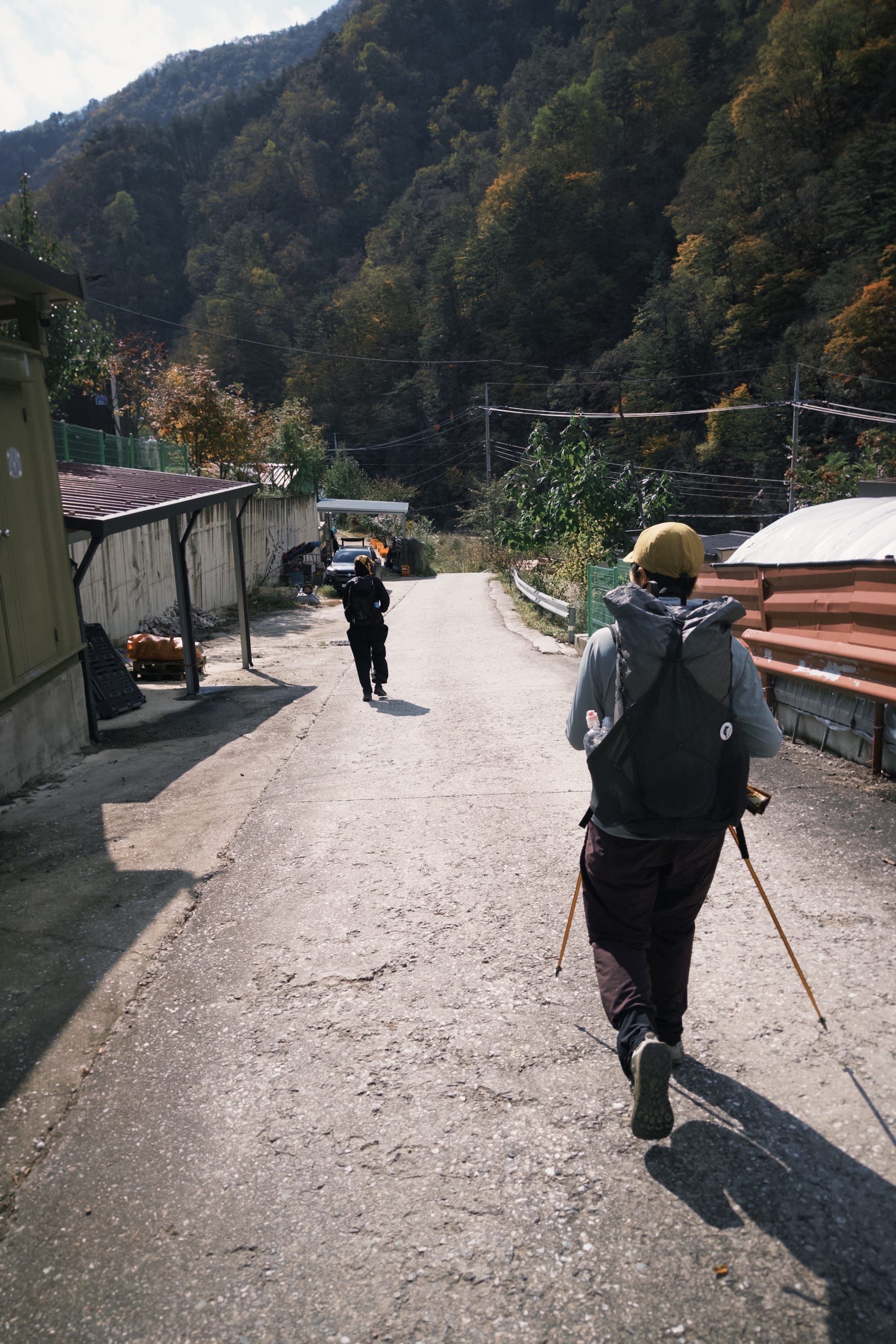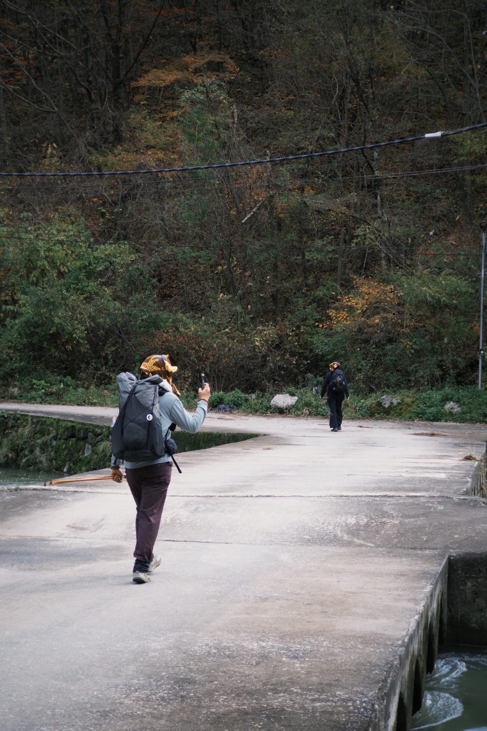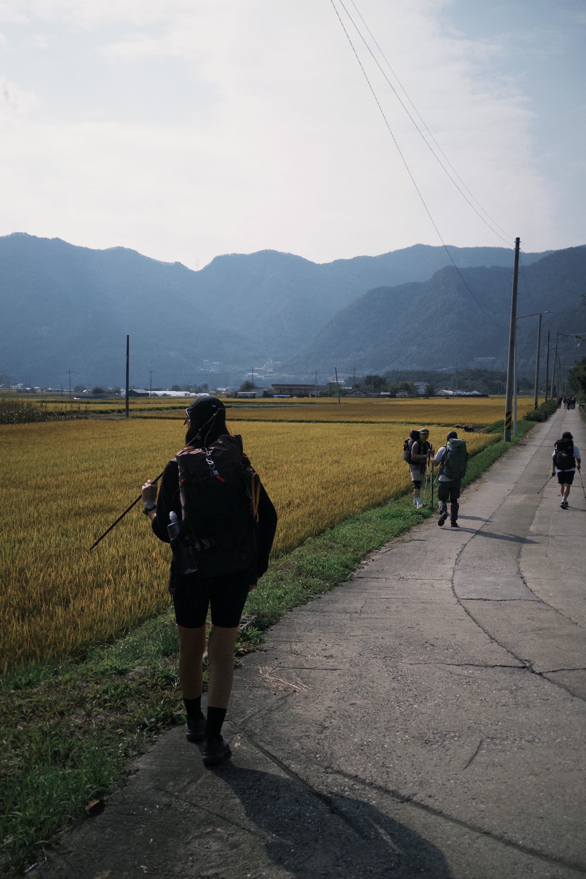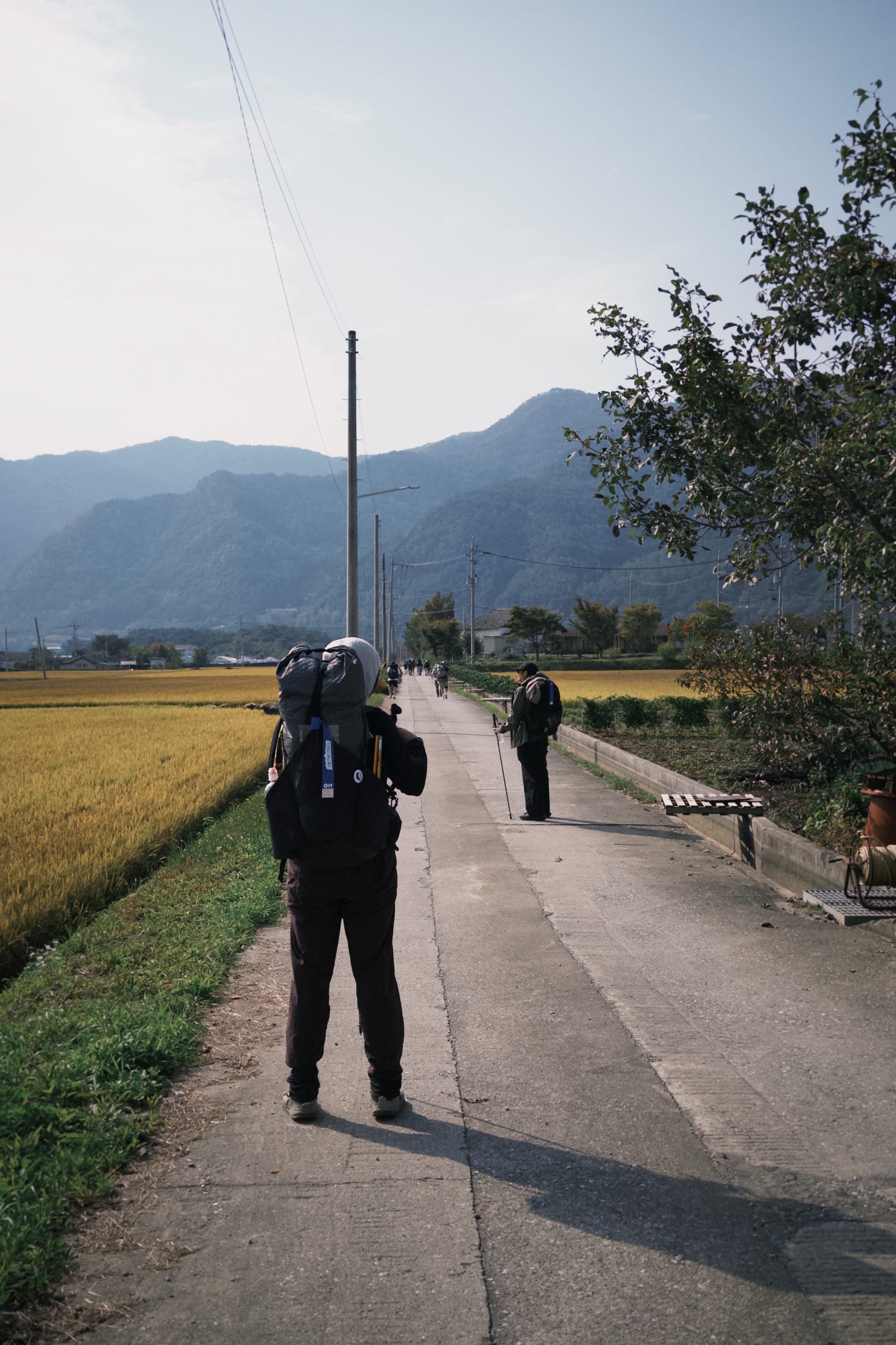 下山之後一路都走在很像宜蘭的鄉路上,工作人員之一的 ANDY 陪伴著我們一起走著,時不時鼓勵我們、和我們閒聊。這次活動台灣人只有我們三位,來自日本的參賽者有兩位,據說兩位都是日本輕量裝備店的老闆來玩。以前好像也有過台灣人來參加活動,可能這算是偏當地的活動,外國參與者基本上只佔 1~5%。(這次參與者好像也 300 位左右)