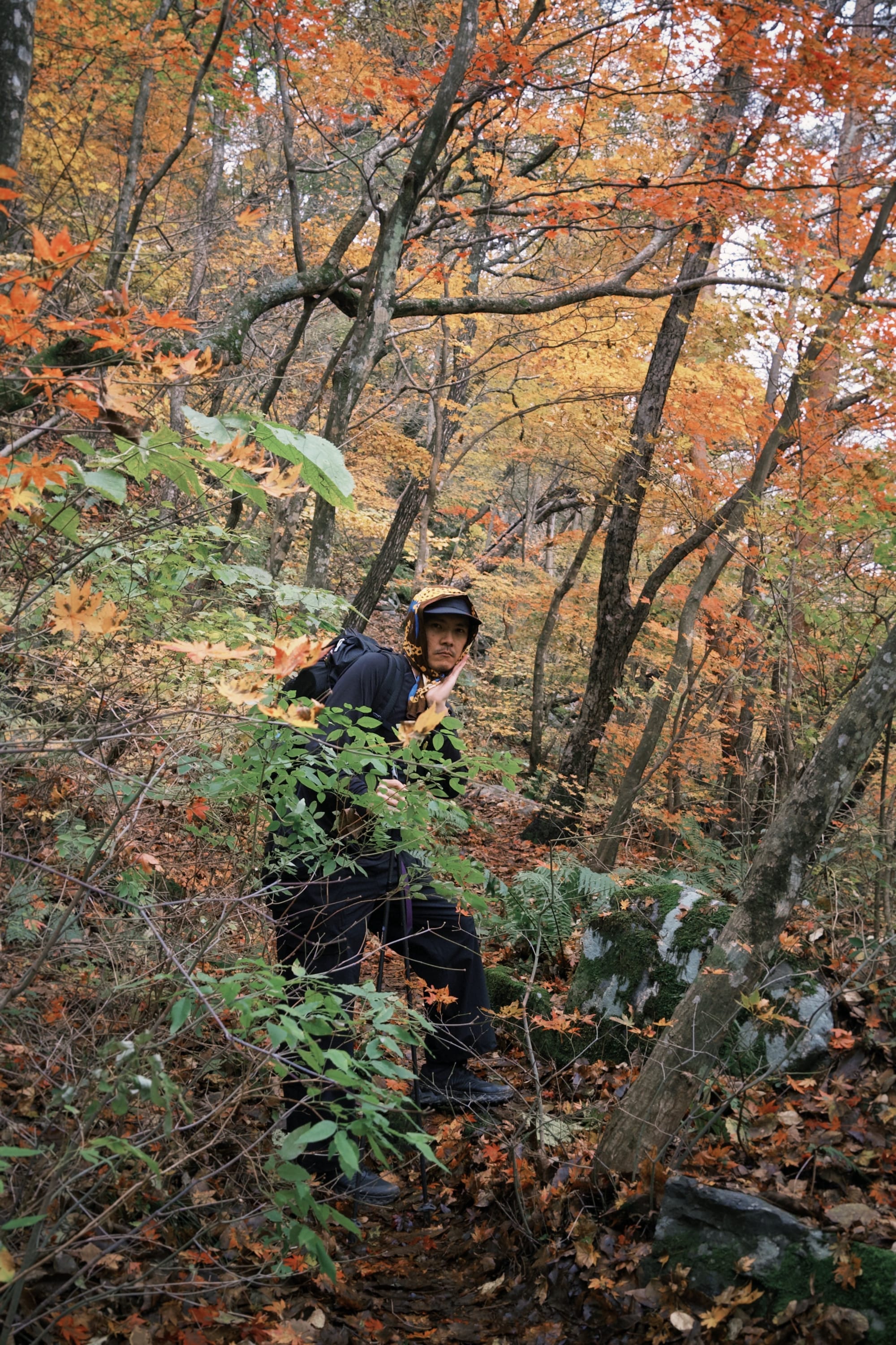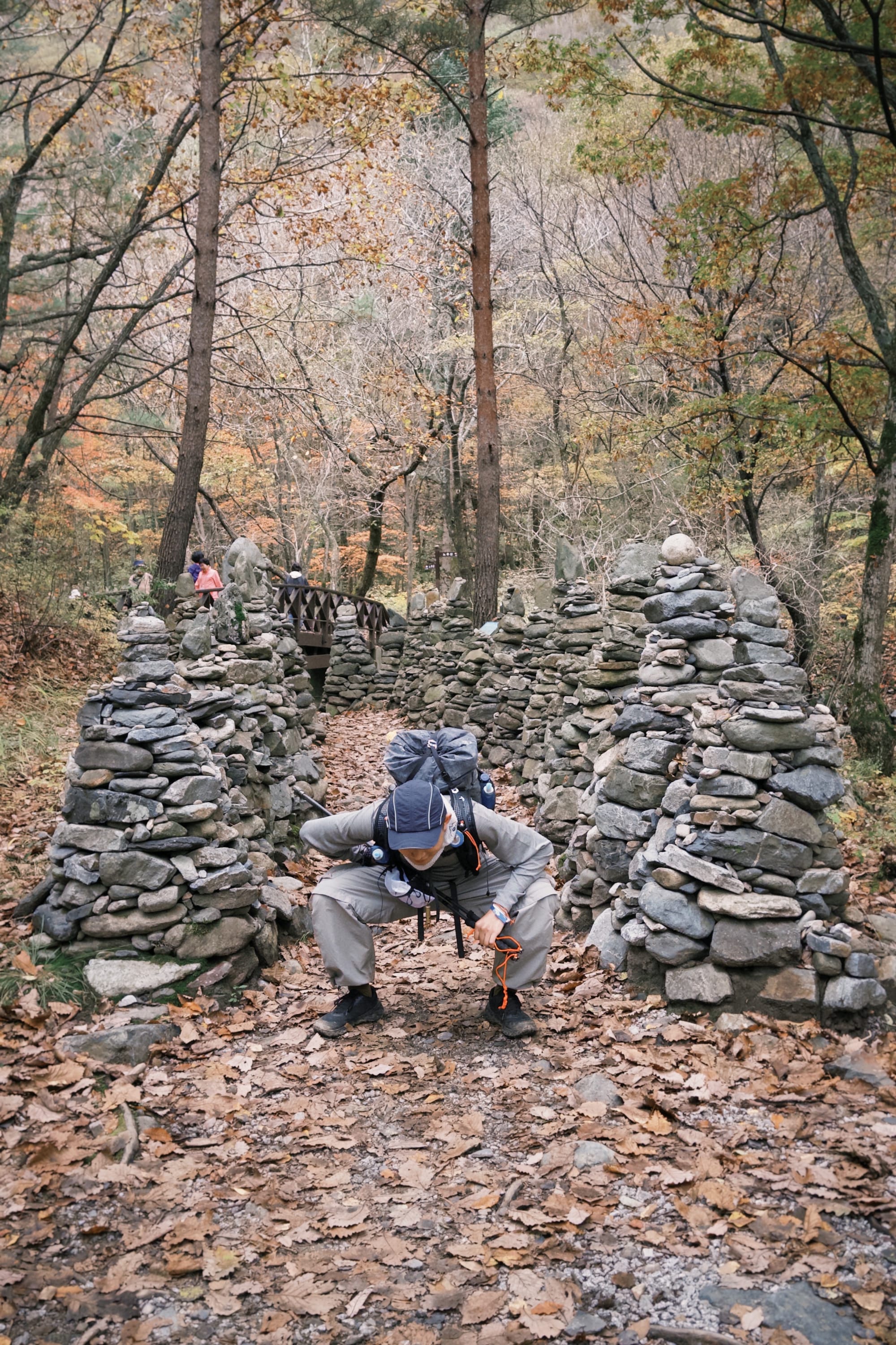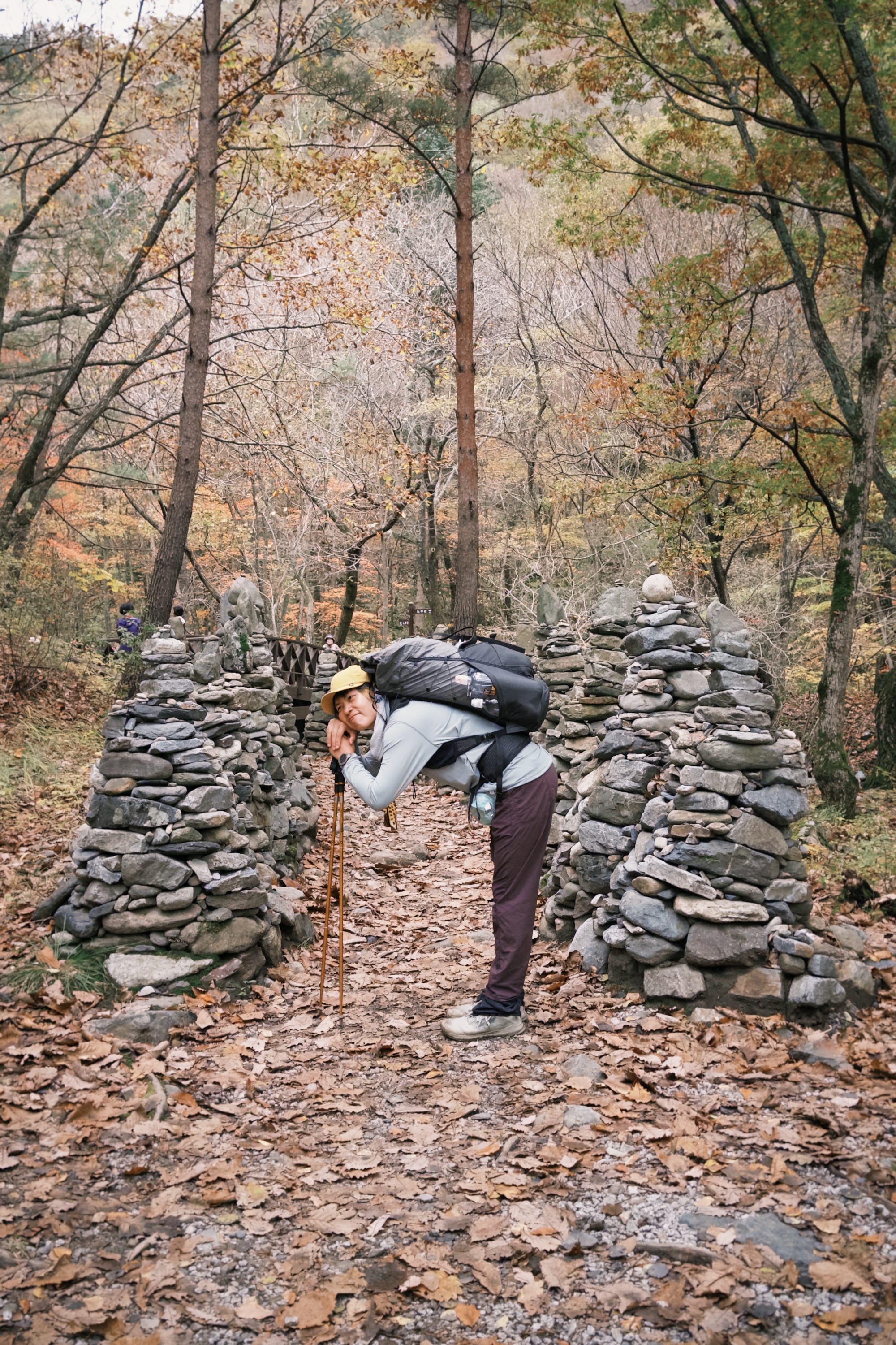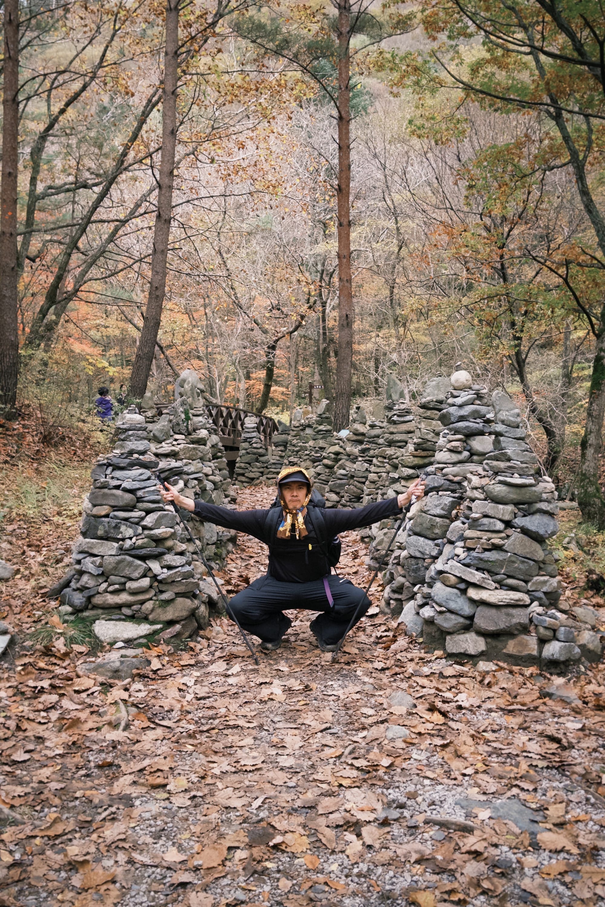 一路上都是滿地的楓葉,到達每一個檢查點基本上都有明確的地標物(白頭大幹好酷的名字)