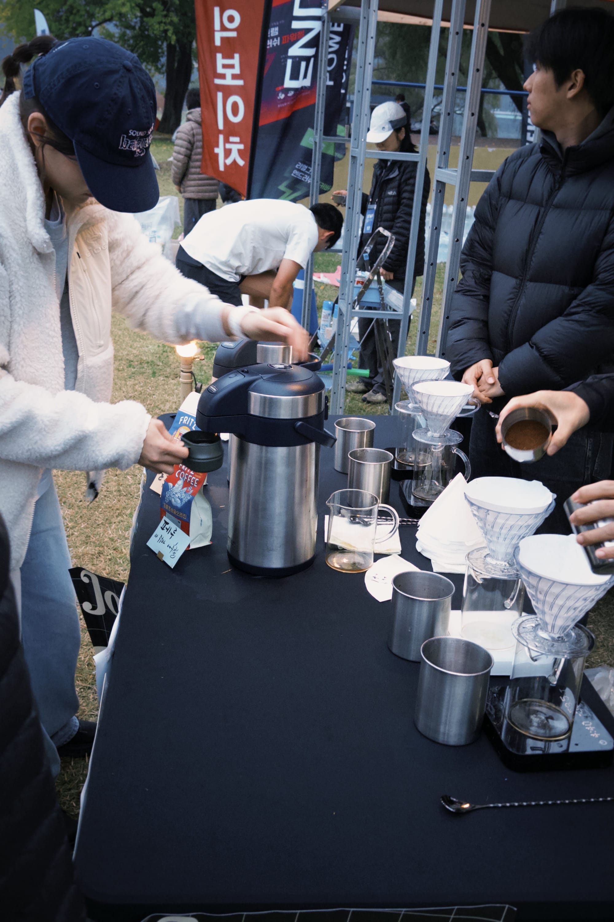 兩種咖啡可以喝(喝不出來差別的我) / 昨天的營地終點拍照區 / 起床散步的大家