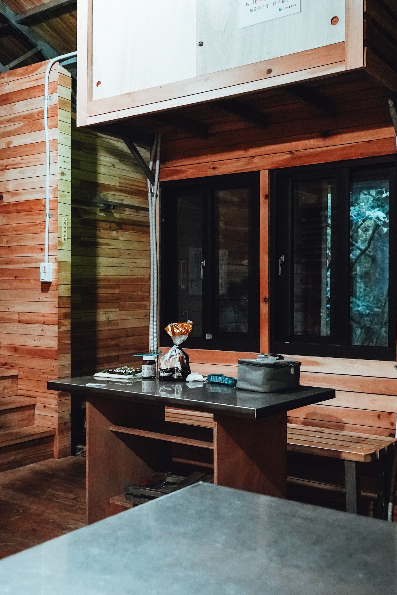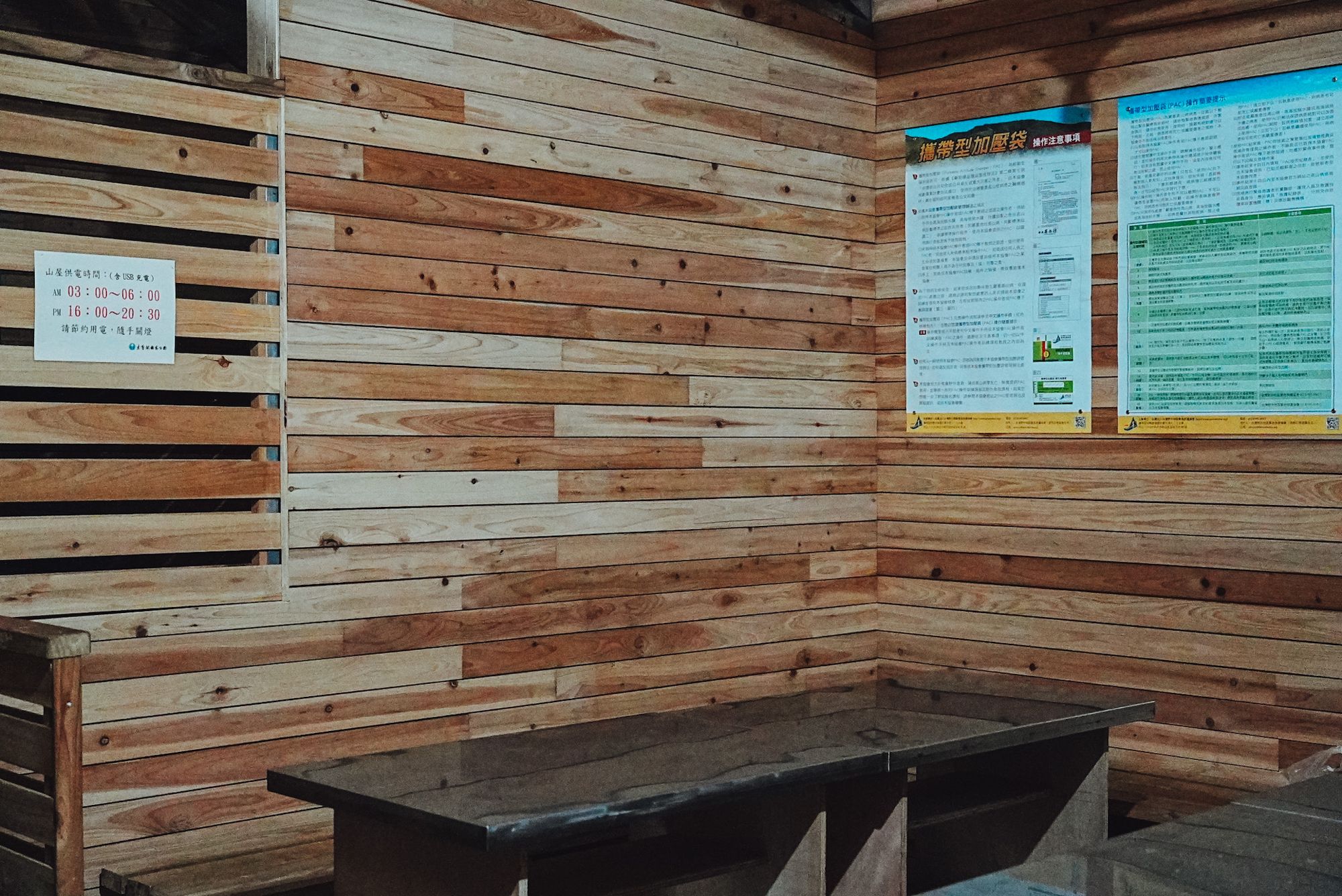 屏風山屋是上下層的設計,室內有炊煮區,這是我最喜歡的部分!在限定的時間內,山屋有供電呦!