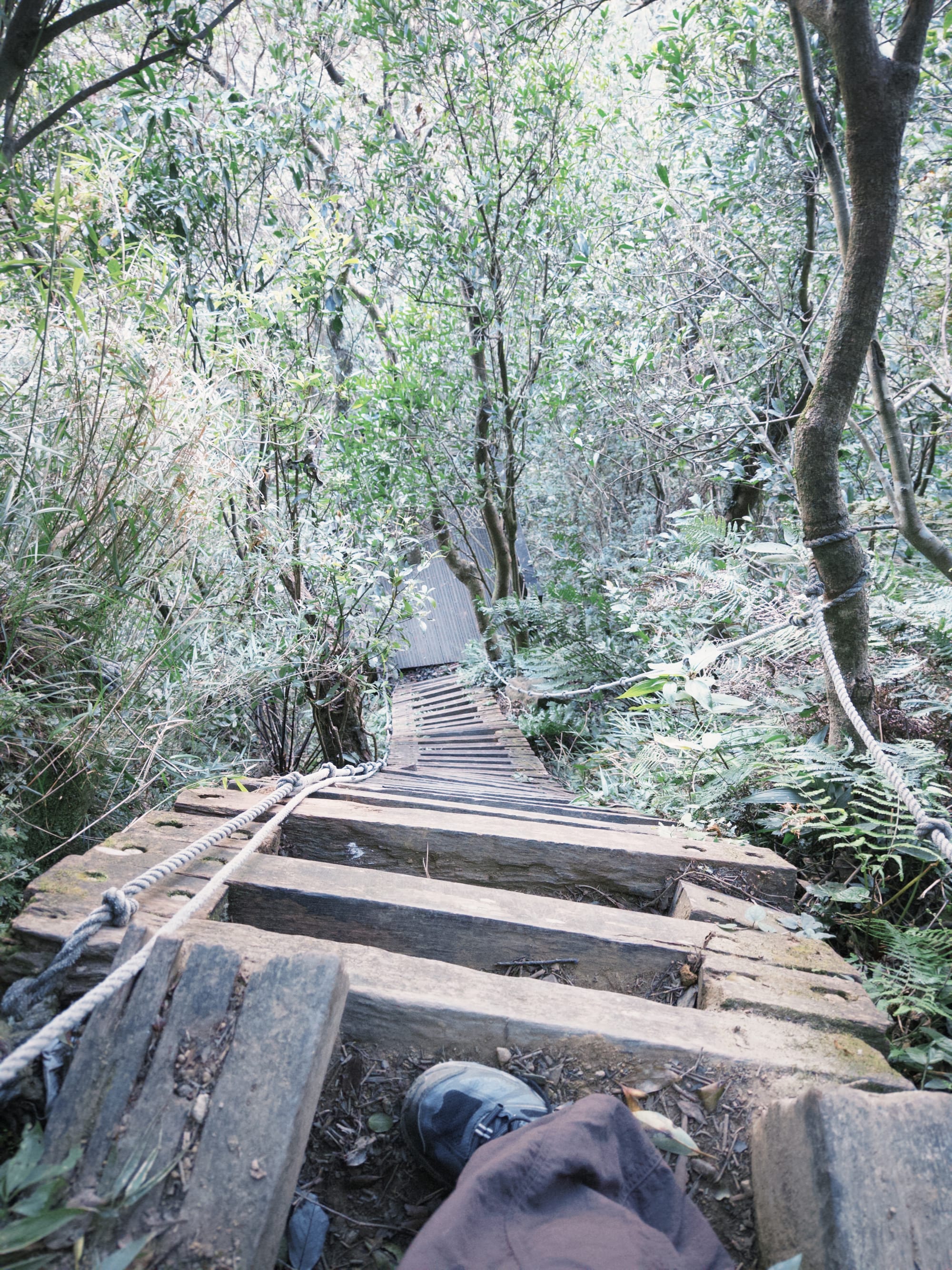 沿途有近乎垂直的 90 度崖梯,手腳並用才能往上攀爬。緊張之餘,站上高處俯瞰新店山谷,會覺得一切挑戰都值得。