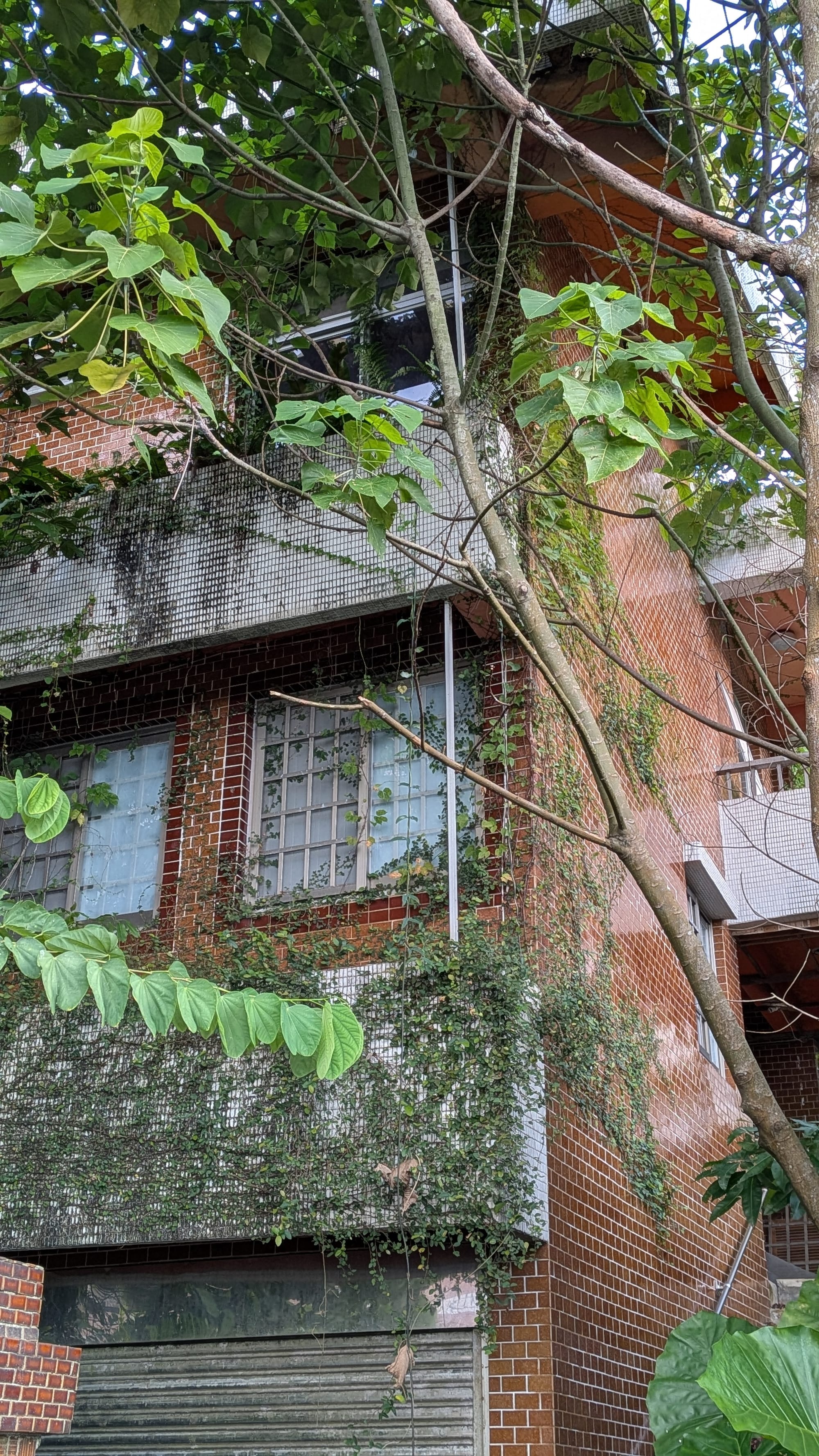 我不斷對照地圖,確認沒有偏離方向,終於從山徑回到柏油馬路。沿著南天母路的巷子繞行回停機車的地方,途中經過一棟待售的別墅,牆面爬滿藤蔓、窗戶破碎,讓我不禁想起日本電影《咒怨》。多看了兩眼後,我加快腳步匆匆通過。