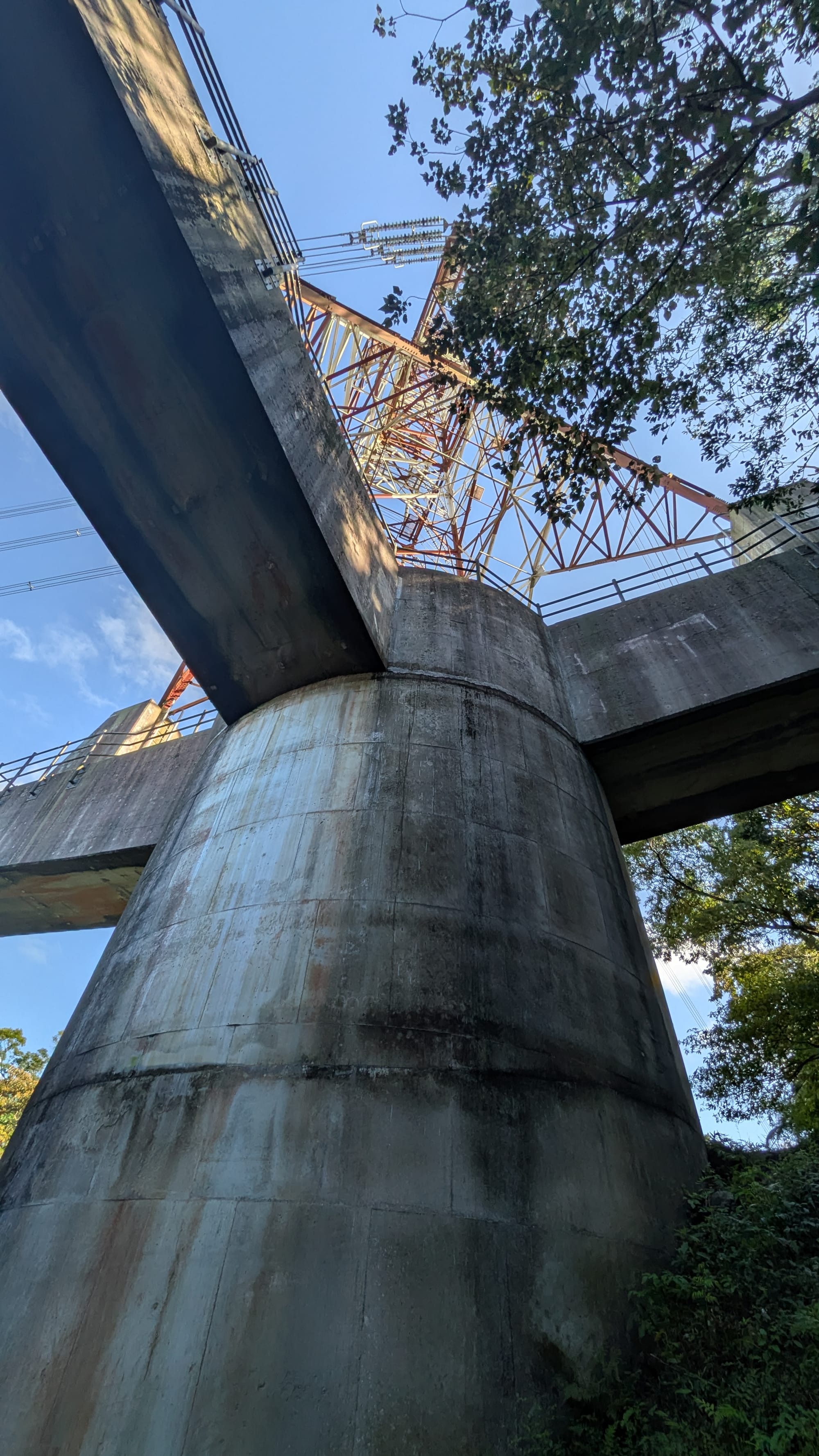 山徑旁可以看到巨大的電塔,從下方仰望,有點像漫畫《二十世紀少年》的場景。水泥底座撐起金屬電塔,筆直通往天空,彷彿佇立在山中的「朋友之塔」。
