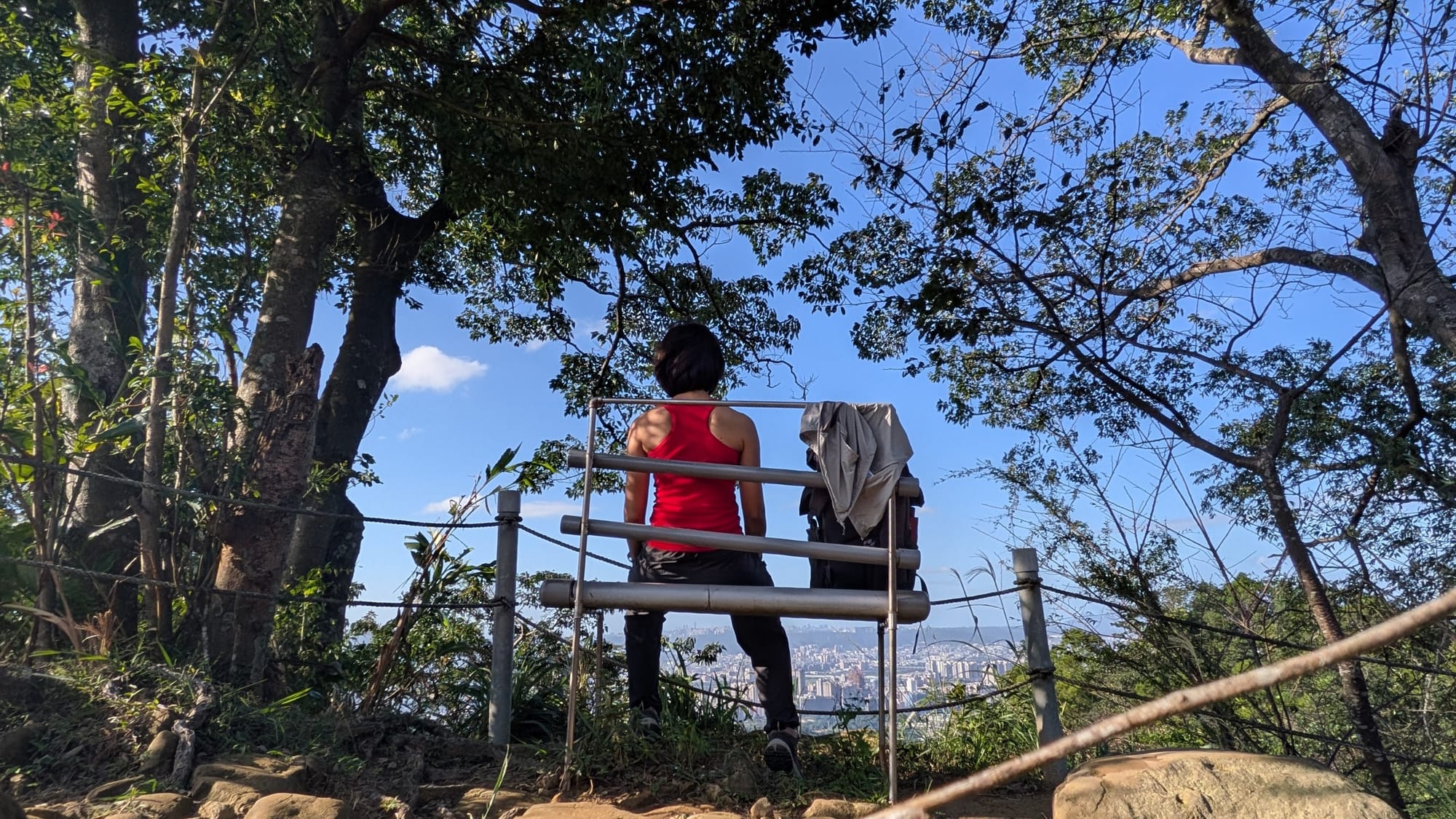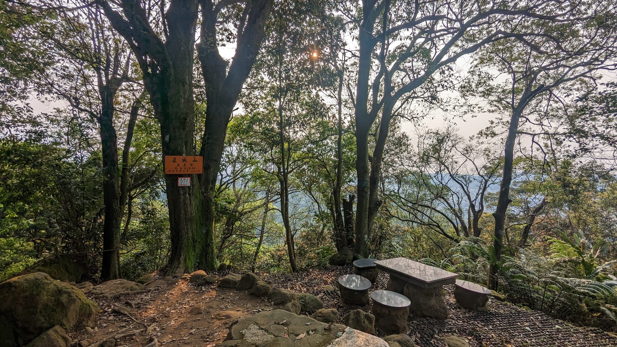 一個天氣晴朗的午後,我終於結束數個月忙碌的工作,得以在平日偷閒上山。平日下午不像假日那樣壅塞,步道人群多半是退休人士,整體氛圍特別有種「不用上班」的鬆弛感。不同於平時登頂天上山三角點後就從觀月亭折返、經桐花公園下山,這一天,在山頂看完土城市區的風景後,我選擇往五城山方向走去,換一條路下山。