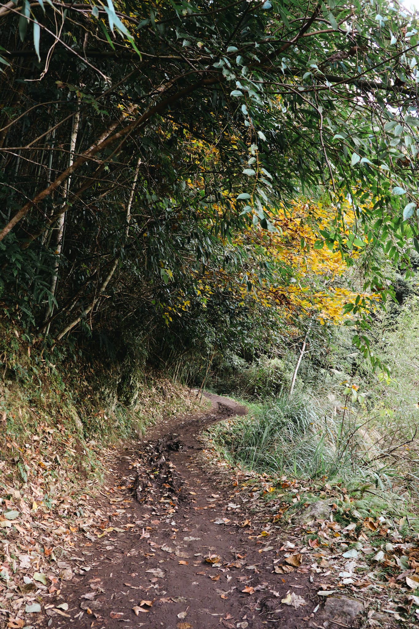一整片平坦的道路,老實說一個人走得有些睡意,於是決定自己找樂子,從地上挖掘楓葉開始。