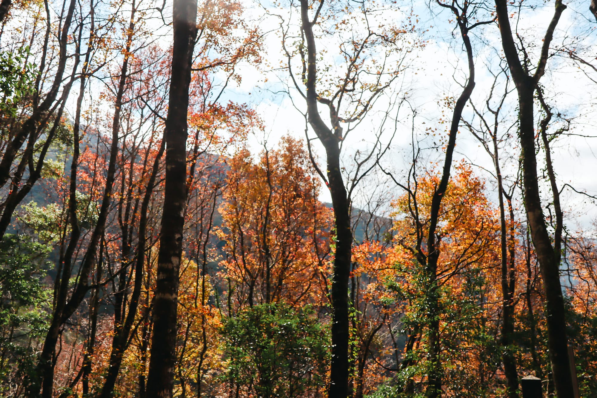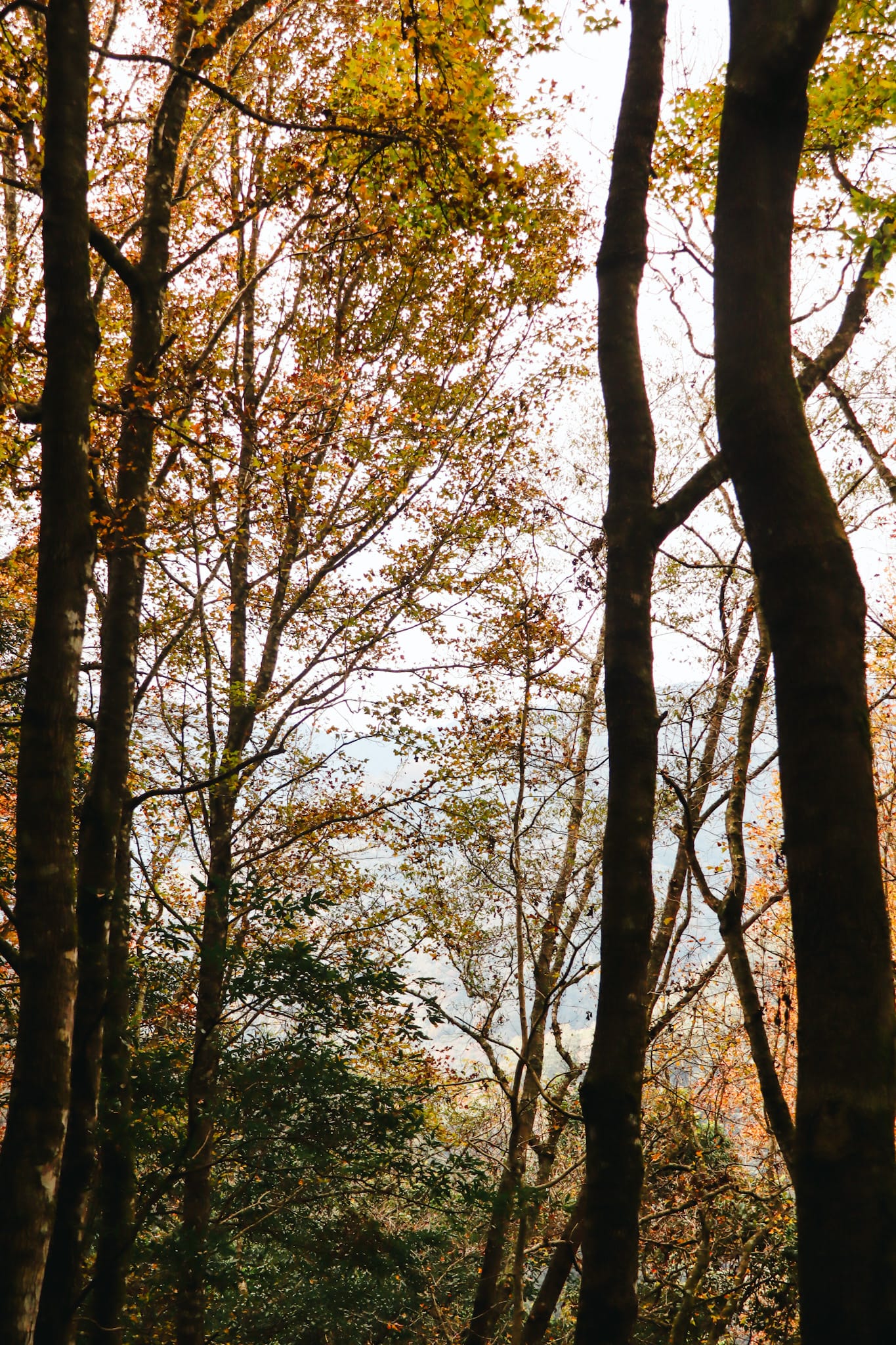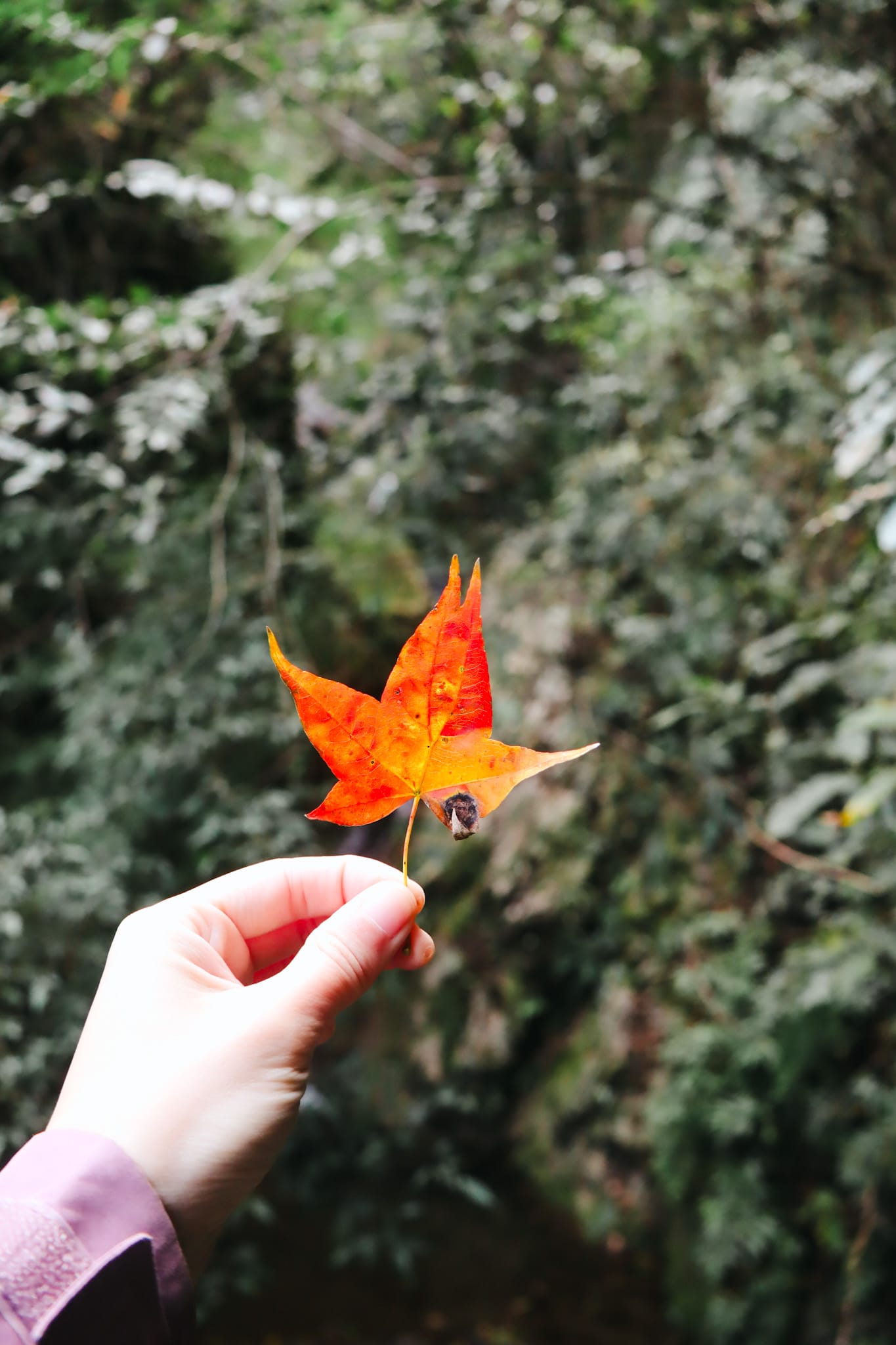 走著走著會突然發現原本綠色的樹葉都被染黃了,這一幕真的超漂亮,這是我第一次看楓葉,好喜歡這樣楓紅的場景。