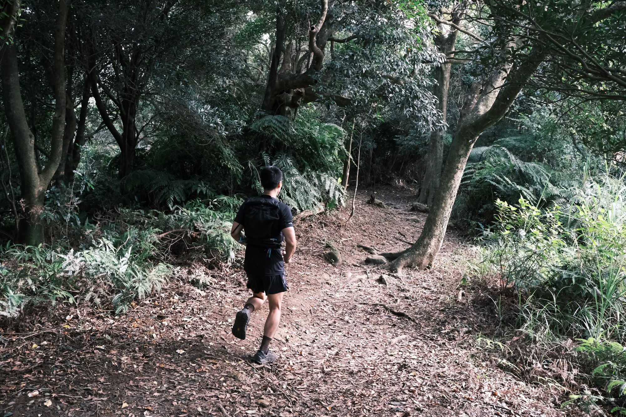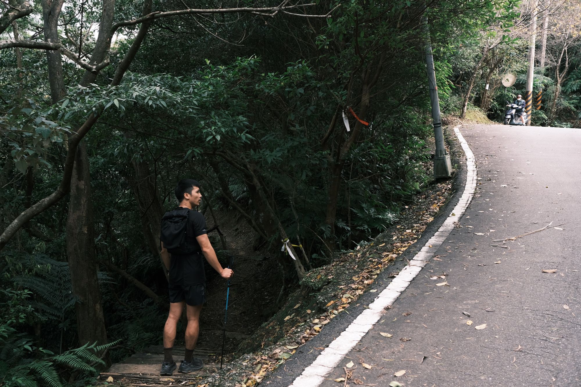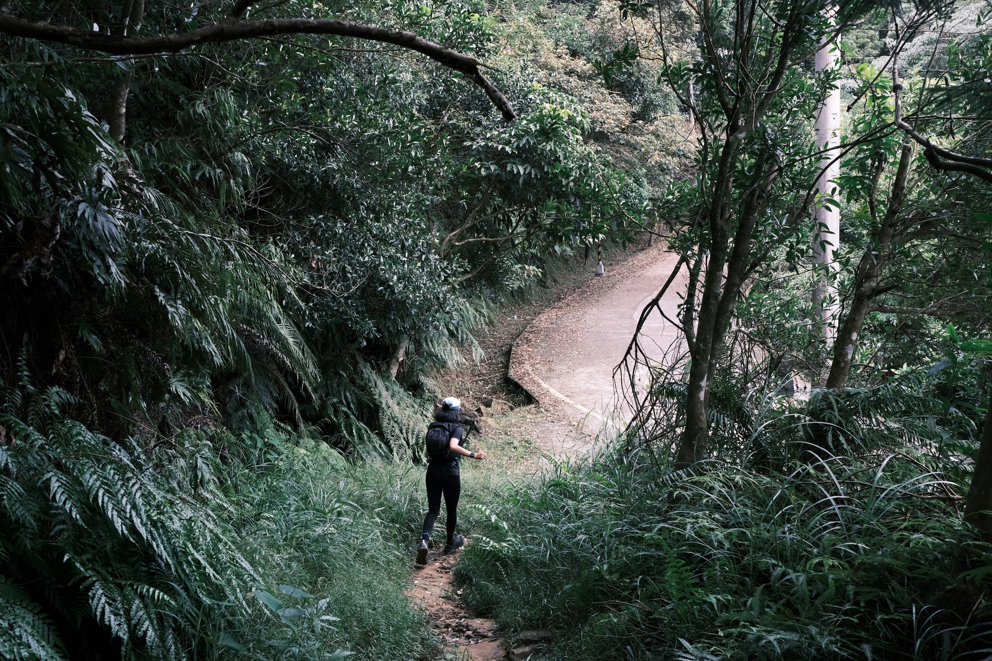 跑向柏油路,一小段再下切,再往上爬一小段