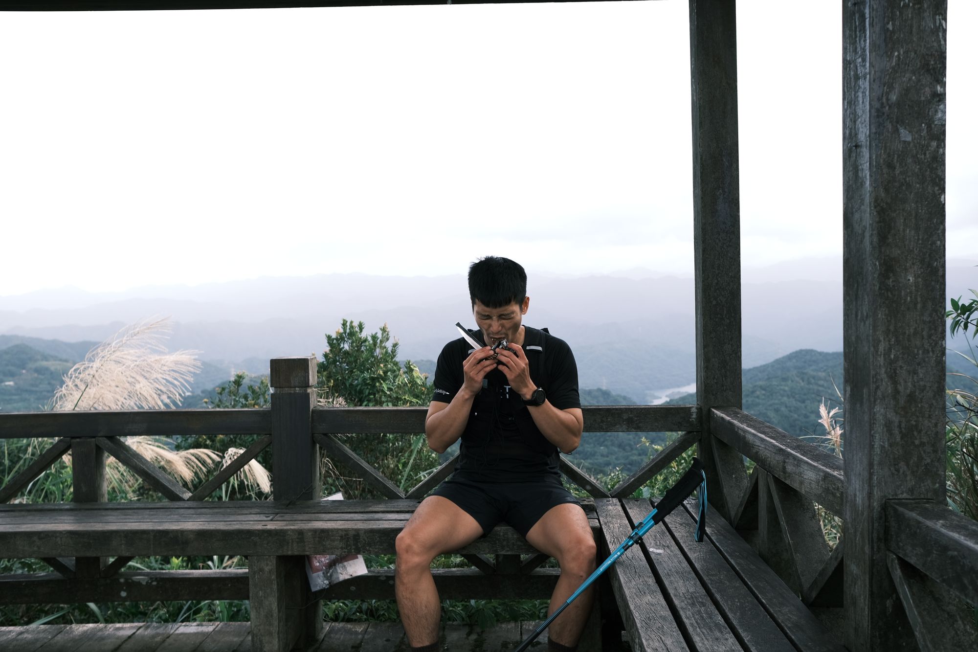 抵達二格山會有一個大涼亭坐休息,但風蠻大記得要穿上外套,感謝賽道保鑣陪同