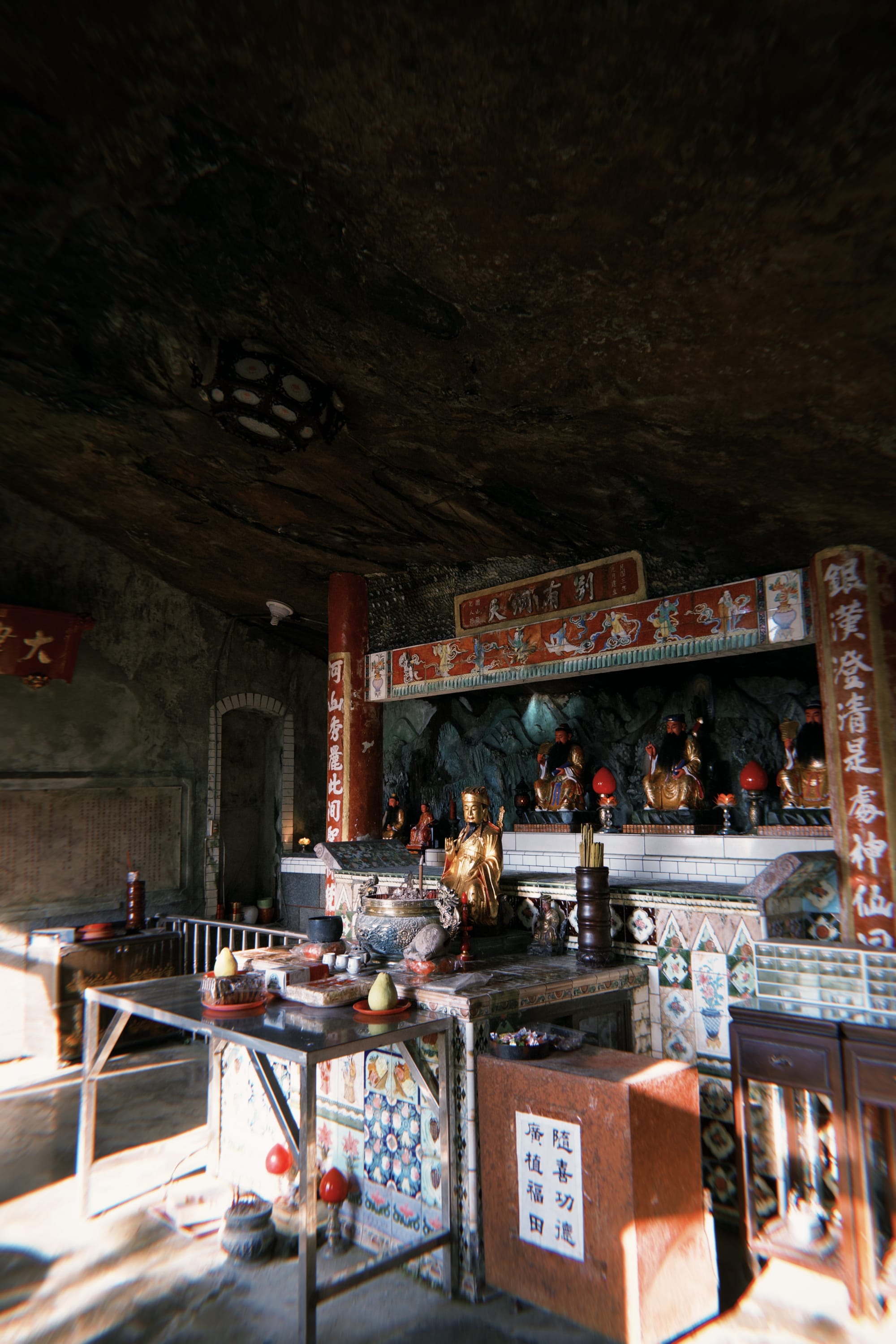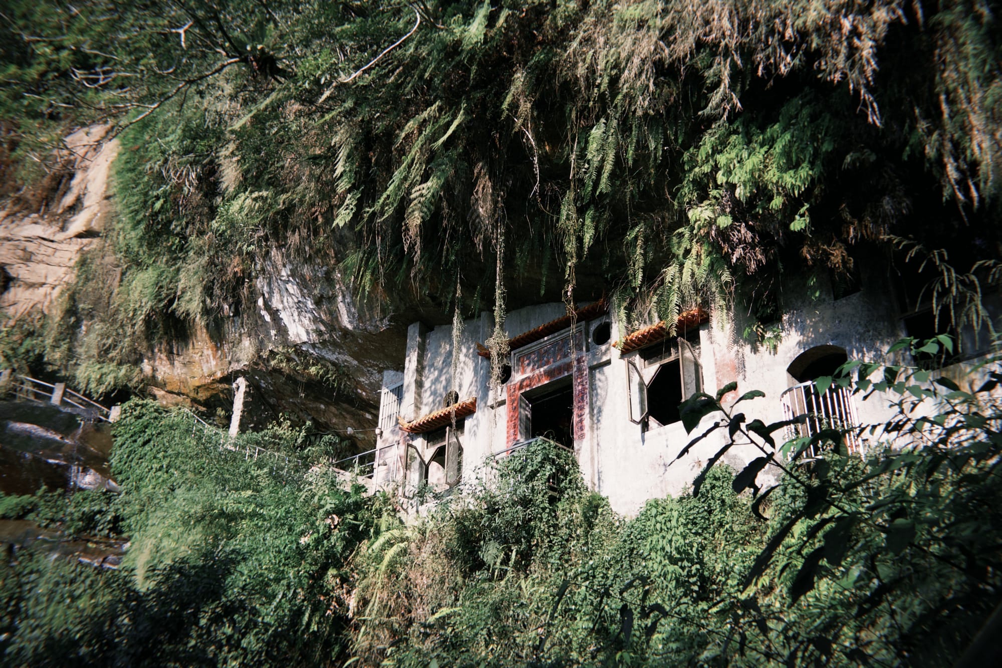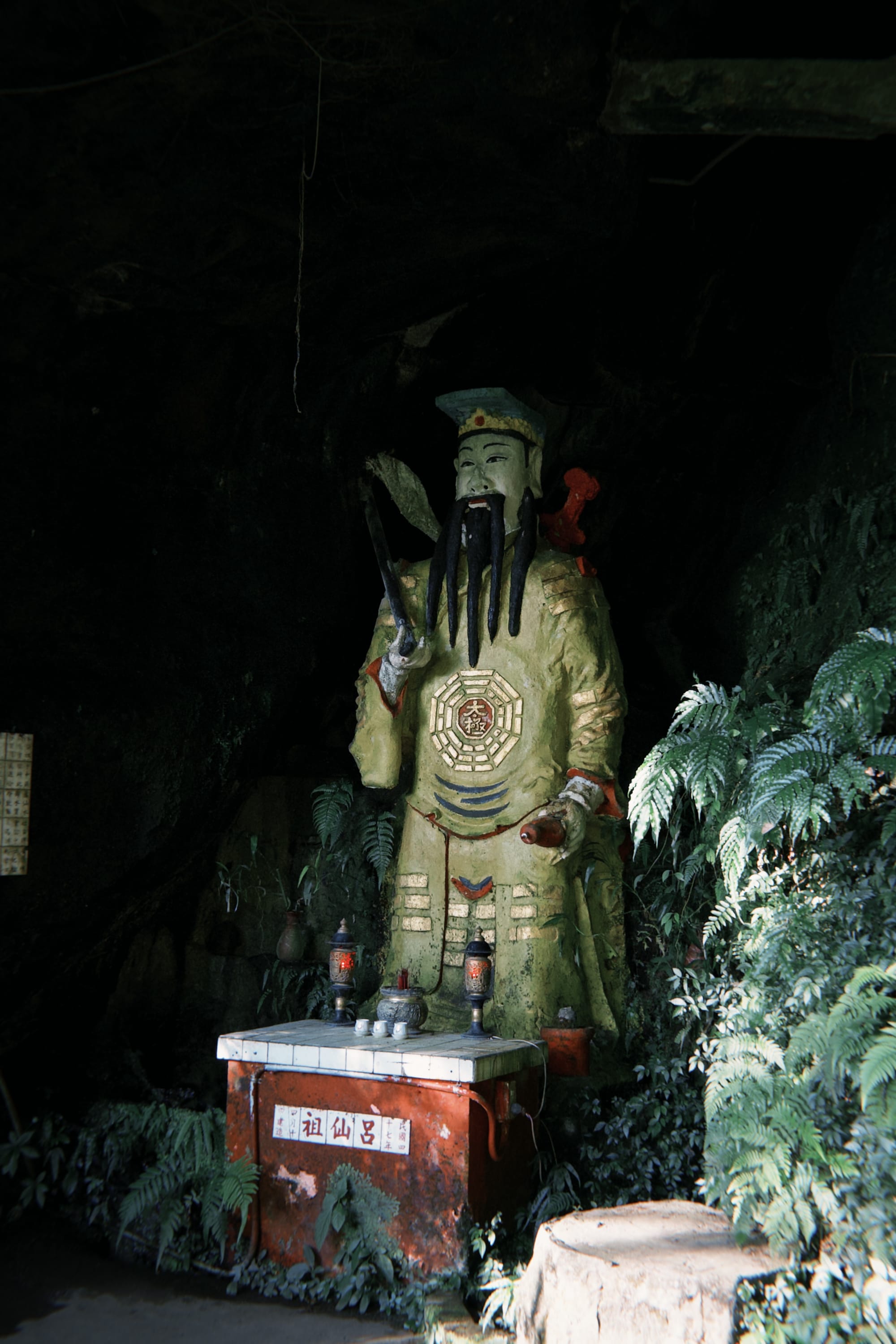 穿過小廟,往後方走,會看見供奉呂洞賓的地方。相傳瀑布上方岩石有呂仙祖的腳印,與景美仙跡岩的腳印相對成雙,因此有人說,這裡的水氣裡藏著仙氣。當陽光透過水簾灑落,整個山谷都像是被柔光包裹,一切聲音都被靜靜吸收,只剩下呼吸。