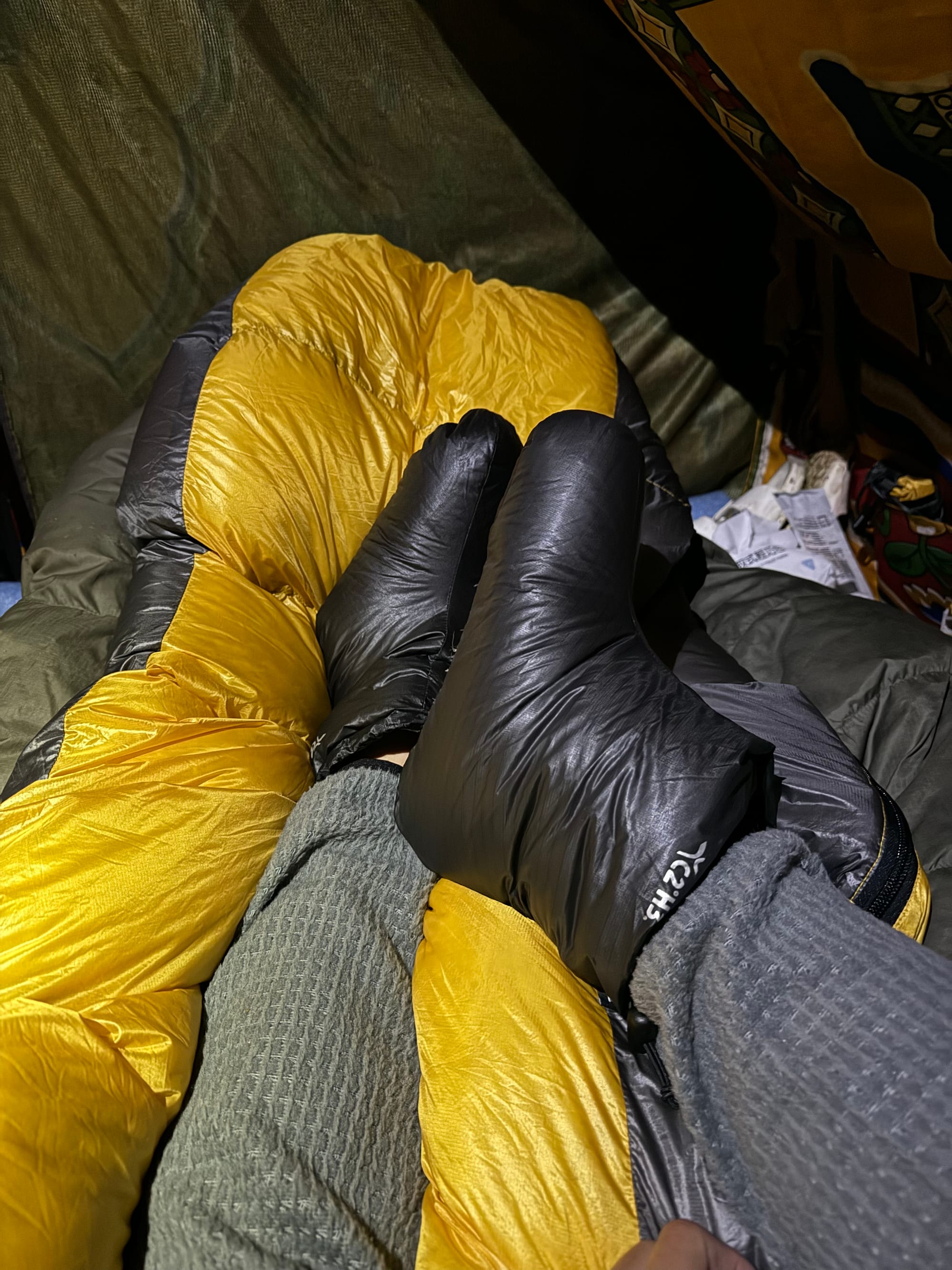 像是 Alpha 材質的睡褲,對怕冷的人來說,保暖差很多,也會讓整個休息品質提升。我也習慣帶著熱水瓶和羽絨襪,讓身體在停下來的時候,能夠真正暖回來。